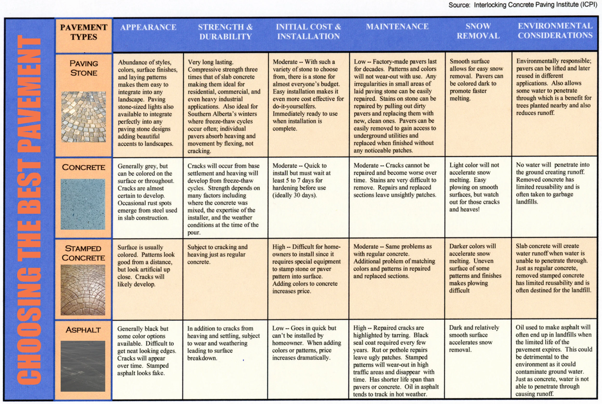 Driving around a city or town, it is quite evident that poured concrete and asphalt are the most common types of pavement, but it’s not due to the lack of paving stone’s suitability for our harsh southern Alberta climate.